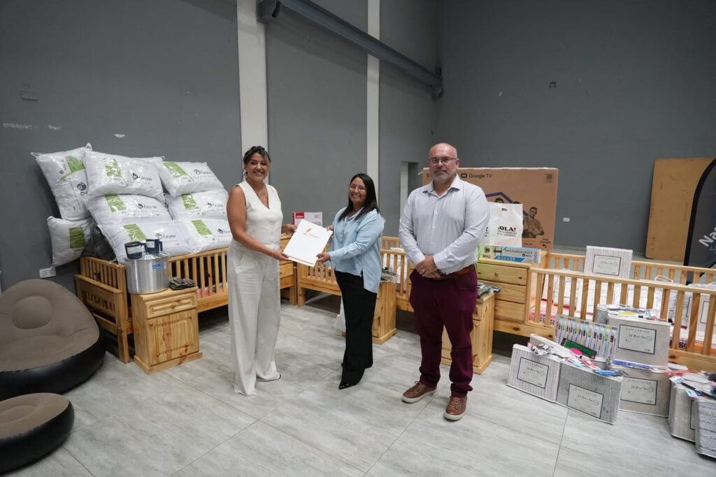 Entre los elementos entregados se destacan tres cunas funcionales completas con colchones y ropa de cama, 16 cámaras de vigilancia, un televisor de 50 pulgadas con soporte, tres juegos de sillones con apoyapié, placas de Durlock, pintura, mesas de luz, cubrecamas, juegos de sábanas, almohadas, toallones, una plancha a vapor, calzado, ropa interior y artículos de higiene personal, entre otros insumos.