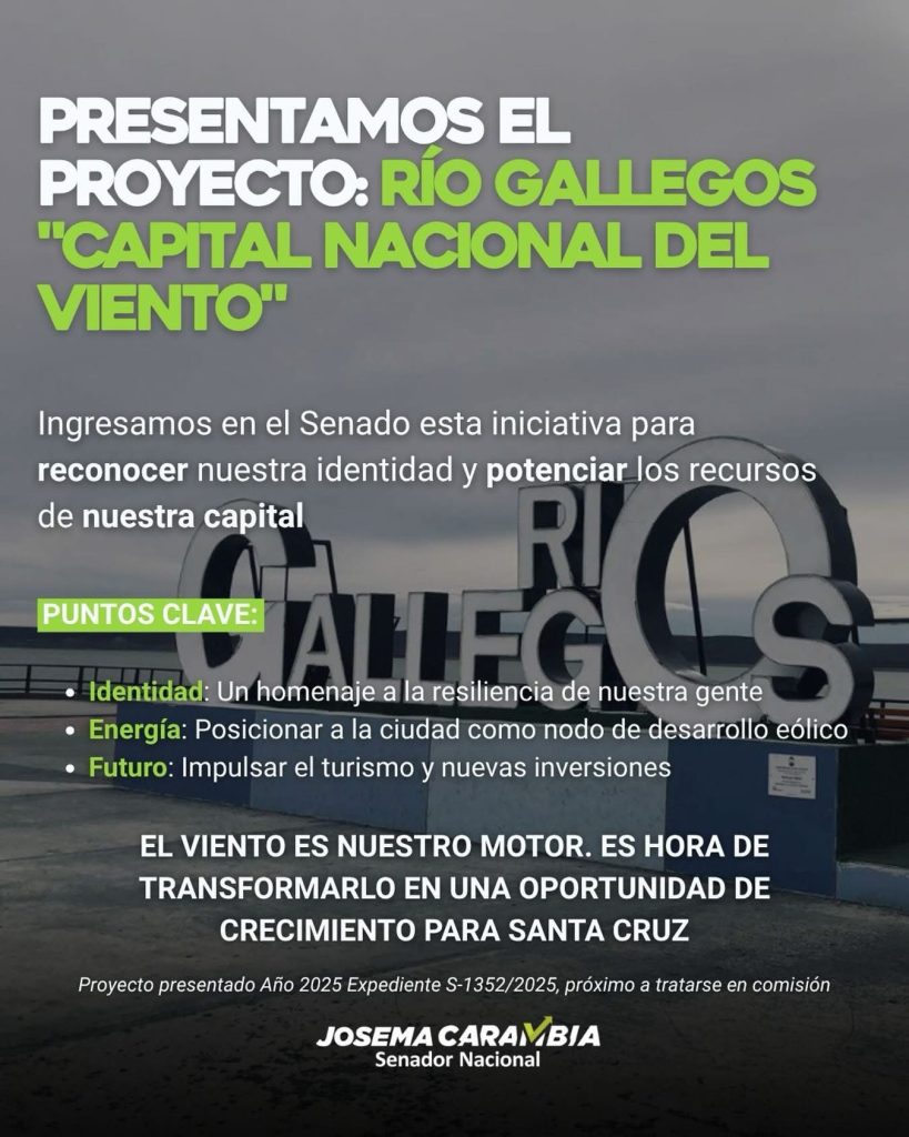Uno de los proyectos propone declarar a Río Gallegos como Capital Nacional del Viento, en reconocimiento a una de las características más distintivas de la ciudad y su potencial estratégico para el desarrollo de la energía eólica.