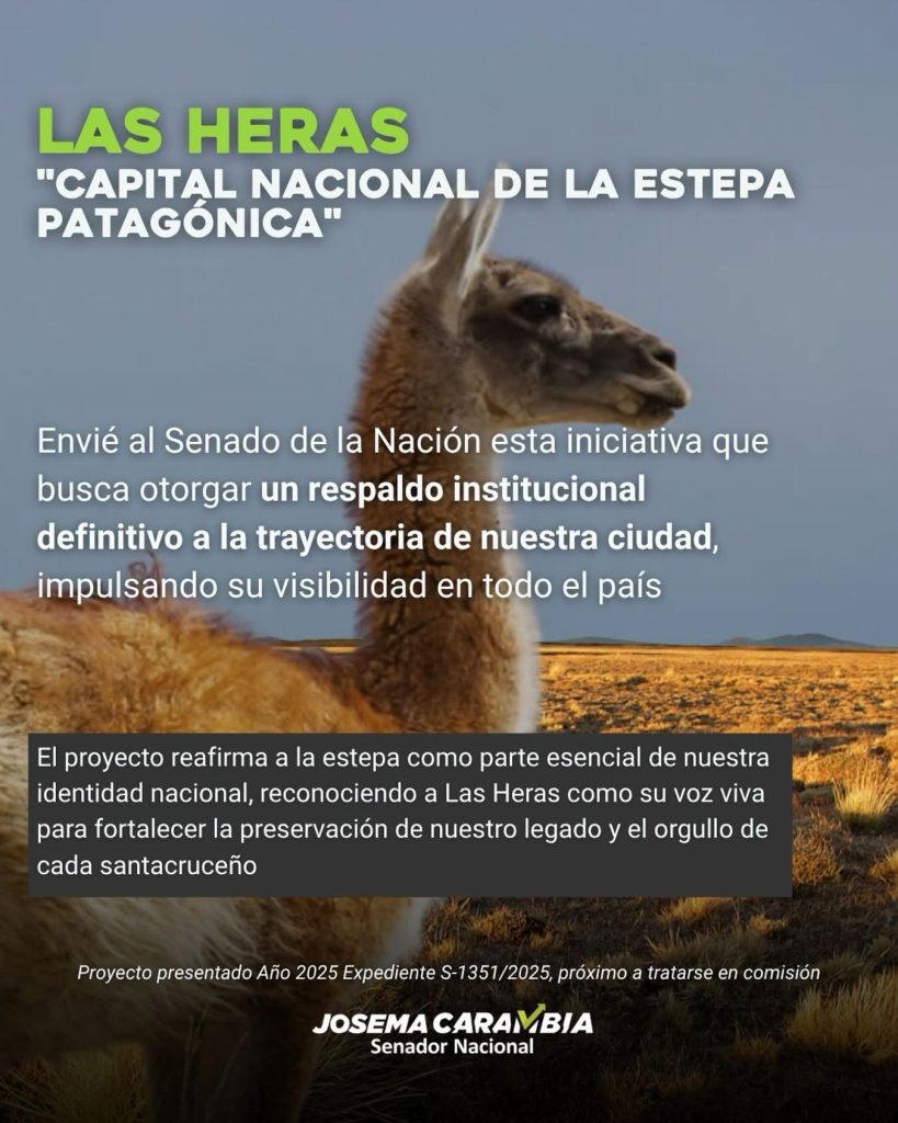 El senador nacional Josema Carambia impulsó en el Senado de la Nación tres proyectos de ley orientados a destacar la identidad, el potencial productivo y el valor ambiental de distintas localidades de Santa Cruz.